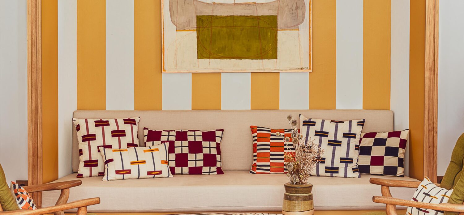 In the rooms and common spaces, we find the colorful works of Jessica Martin but also in the ones of Noémie Cédille whose collages mix simple shapes and graphic lines, forming poetic pieces of art on the border between narration and abstraction. In Inès Mélia‘s work too, the raw shapes are at the center of her work, by marrying them with soft colors for calming creations.